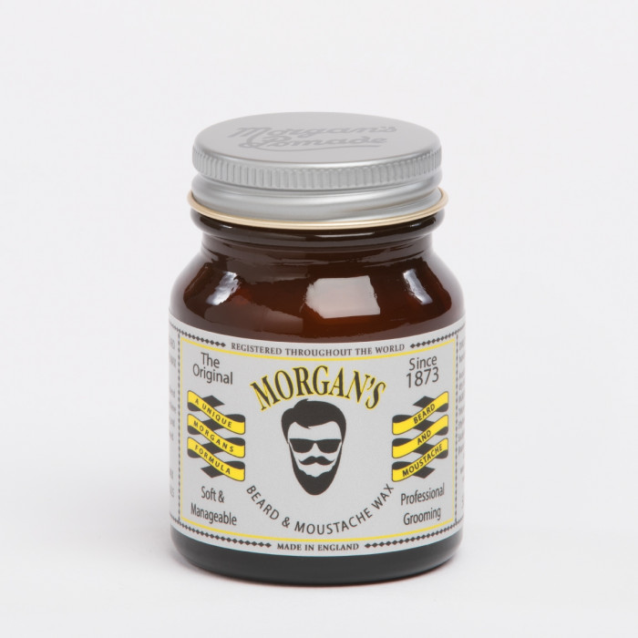 50g Retro Amber Jar Ultra stiff wax perfect for handlebar moustaches, goatees and side burns. Conditions and smoothes the hair With beeswax, shea butter and natural oils including wheatgerm, jojoba, mandarin and eucalyptus. With our signature fragrance of bergamot, jasmine, sandal and patchouli. Original vintage style jar. Made with 100% Recyclable Glass